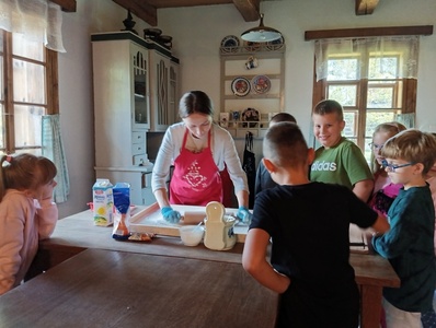 W dniu 19 września 2024 roku uczniowie naszej szkoły brali udział w zajęciach prowadzonych przez pracowników Muzeum Kultury Ludowej w Kolbuszowej. Mieli okazję poznać historię oraz tradycję Lasowiaków i Rzeszowiaków. Uczestnicy wycieczki wzięli też udział w warsztatach "Ziarnko do ziarnka - znaczenie chleba w tradycji".