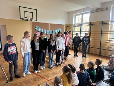 Na początku, dzieci z klas 4-7 zaprezentowały kolegom i koleżankom piosenkę "Panie Janie" w różnych językach. Pojawił się język angielski, hiszpański, francuski, ale nie zabrakło również wykonania tego utworu w języku polskim.