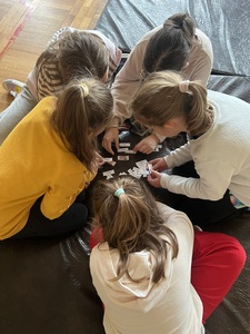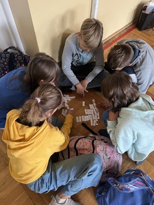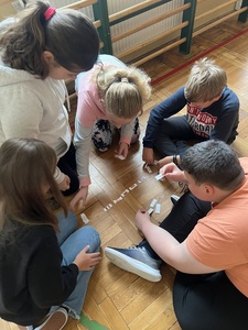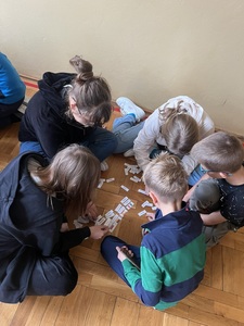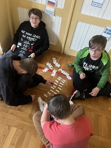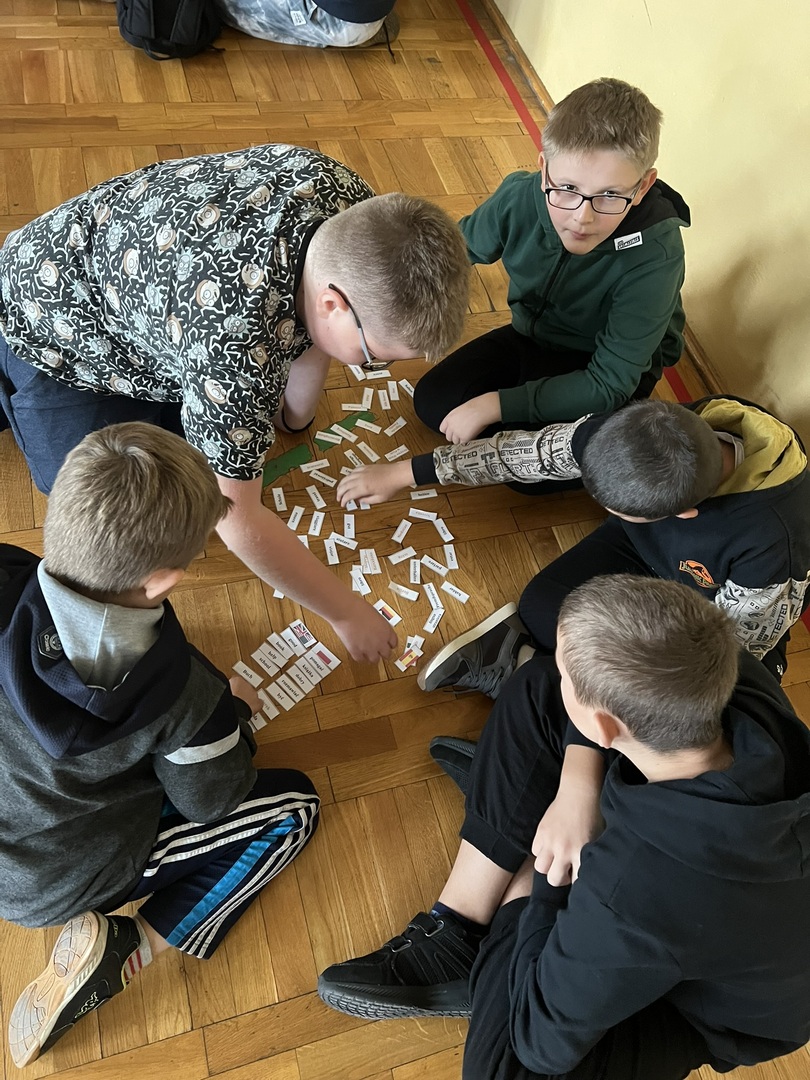 Później dzieci podzieliły się na grupy. Ich zadaniem było jak najszybciej i najpoprawniej przyporządkować odpowiedniki słów w każdym języku do flagi reprezentowanego kraju. Oprócz samych wyrazów, pojawiły się tam nazwy słynnych miast, marki samochodów, symbole charakterystyczne dla danego kraju oraz potrawy. Okazało się to trudniejsze, niż na początku zakładali :)