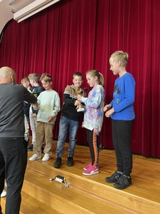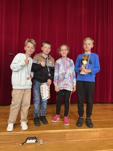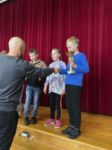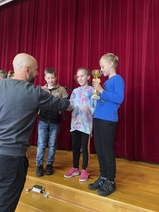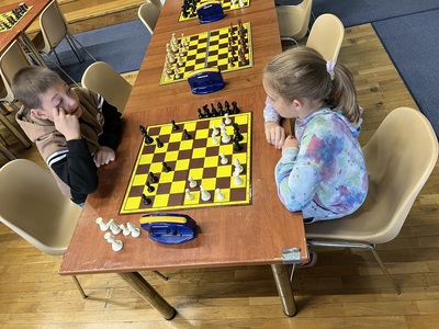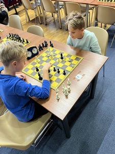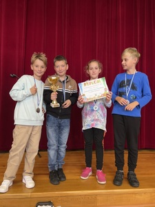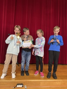 24 października 2024r. czworo uczniów z klasy IV zdobyło II miejsce w turnieju szachowym i tym samym zakwalifikowało się do następnego etapu igrzysk. W tegorocznej edycji udział wzięła rekordowa liczba drużyn z pobliskich szkół (aż 9!), dlatego tym bardziej gratulujemy naszym podopiecznym za olimpijski spokój i godne reprezentowanie naszej szkoły. 🏆🥈