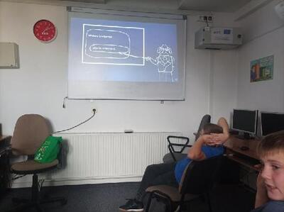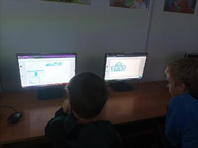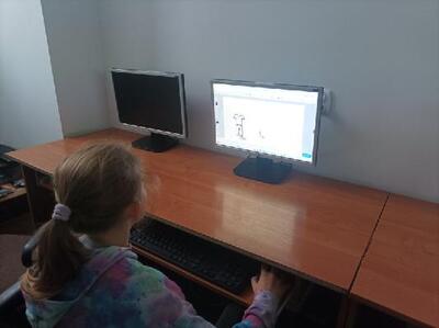 Uczniowie kl. IV i V na zajęciach techniki w ramach obchodów Europejskiego Tygodnia Kodowania tworzyli rysunki z AI. Poznali rodzaje inteligencji i dowiedzieli się, jak działa sztuczna inteligencja.