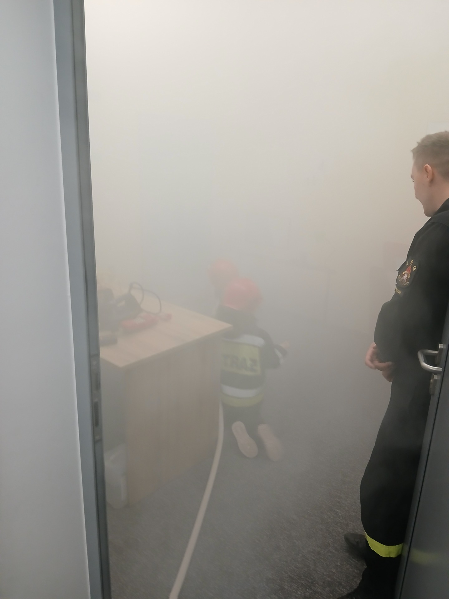 Prawdziwym przeżyciem było wejście do ciemnego i zadymionego pomieszczenia oraz bezpieczne wydostanie się z niego. Na koniec dzieci obejrzały wozy strażackie i specjalne ubrania strażaków.