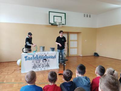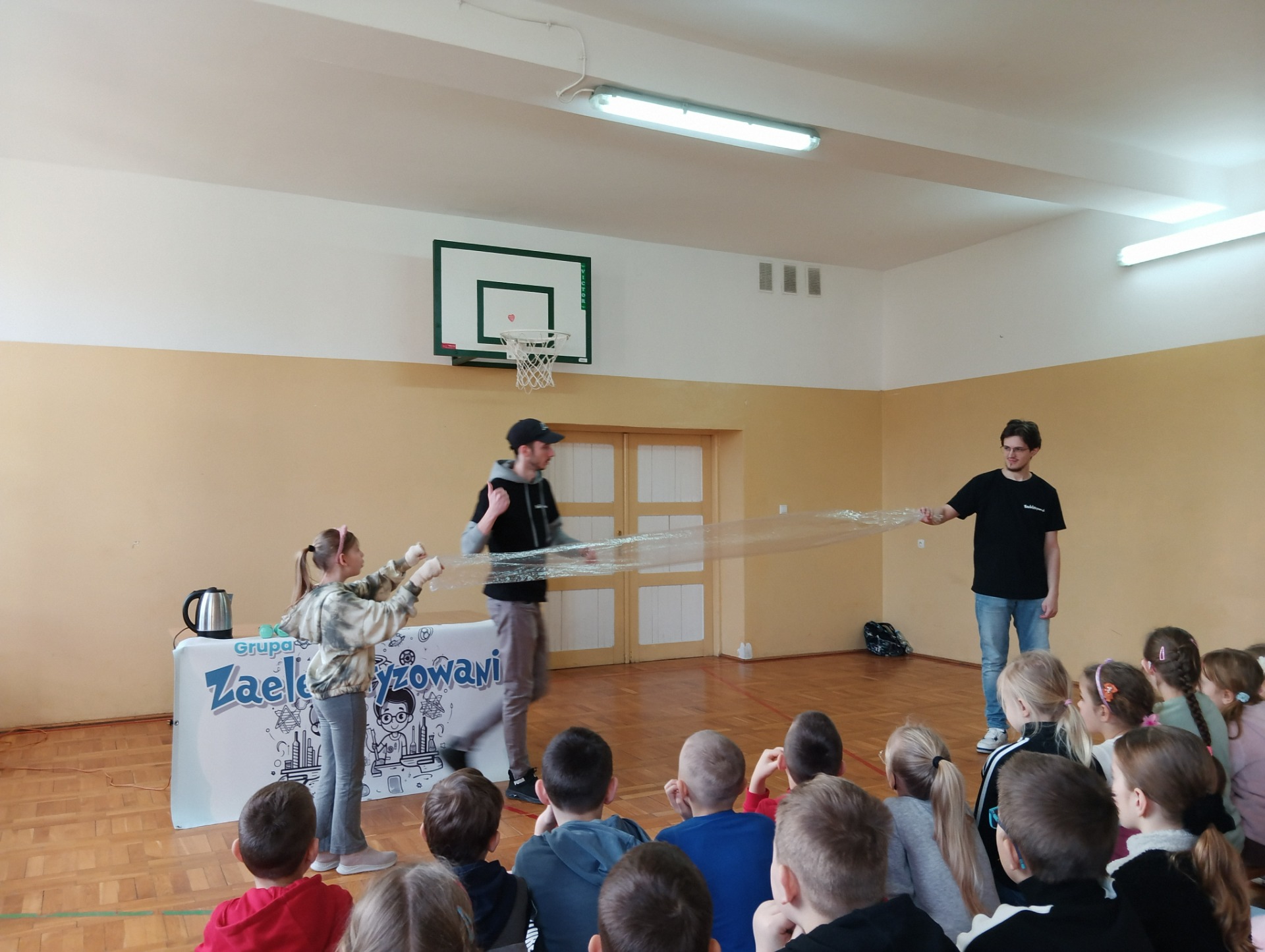 Dnia 5 lutego 2025 r. odbyły się w naszej szkole zajęcia z chemii i fizyki prowadzone przez grupę "Zaelektryzowani". W programie znalazły się eksperymenty, zabawy związane z ciekłym azotem, doświadczenia z napięciem powierzchniowym. Uczniowie mogli dowiedzieć się, czym jest równanie Bernoulliego oraz jak działa siła grawitacji.