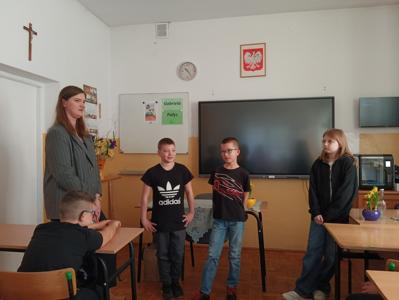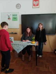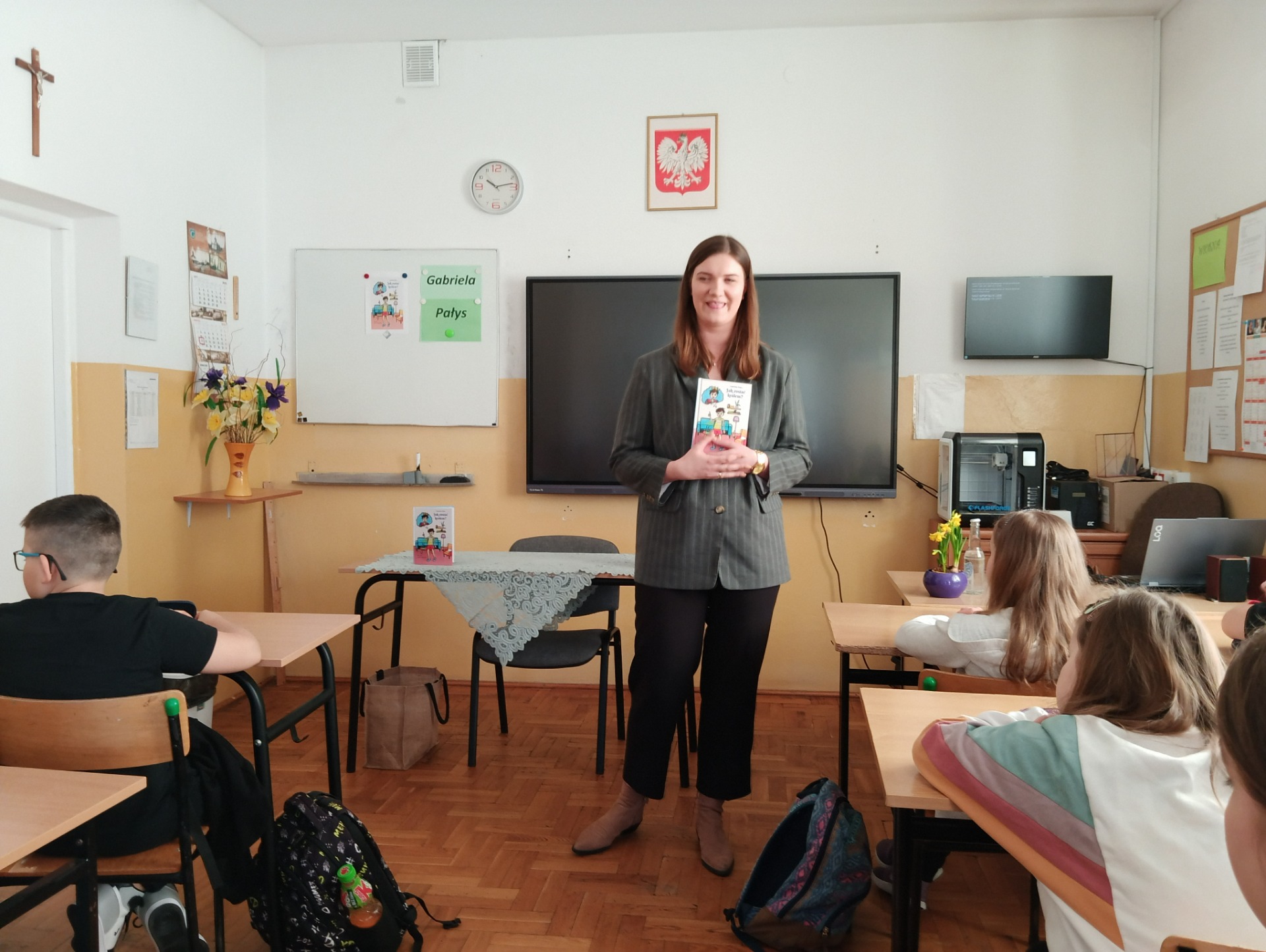 W dniu 19 marca 2025 r. gościliśmy w naszej szkole panią Gabrielę Pałys- autorkę książki dla dzieci "Jak zostać królem?". W spotkaniu uczestniczyli uczniowie kl. I-V. Opowieść o książce nie tylko zaciekawiła młodych czytelników, ale także rozbudziła w nich chęć sięgania po kolejne lektury.