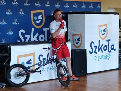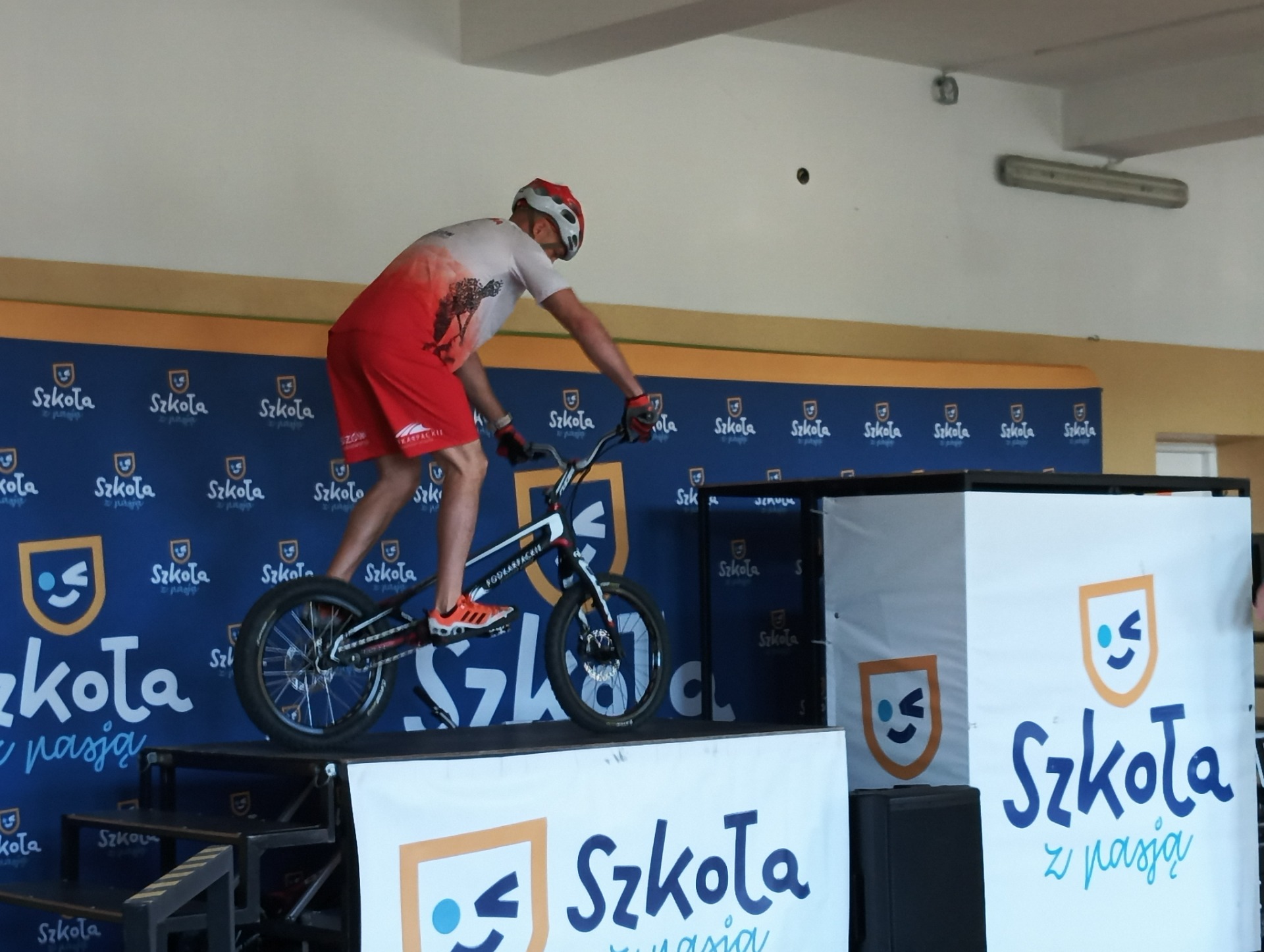 W dniu 26 maja 2025 r. gościliśmy w naszej szkole Krystiana Herbę - sportowca specjalizującego się w trialu rowerowym. Spotkanie odbyło się w ramach projektu "Szkoła z pasją".