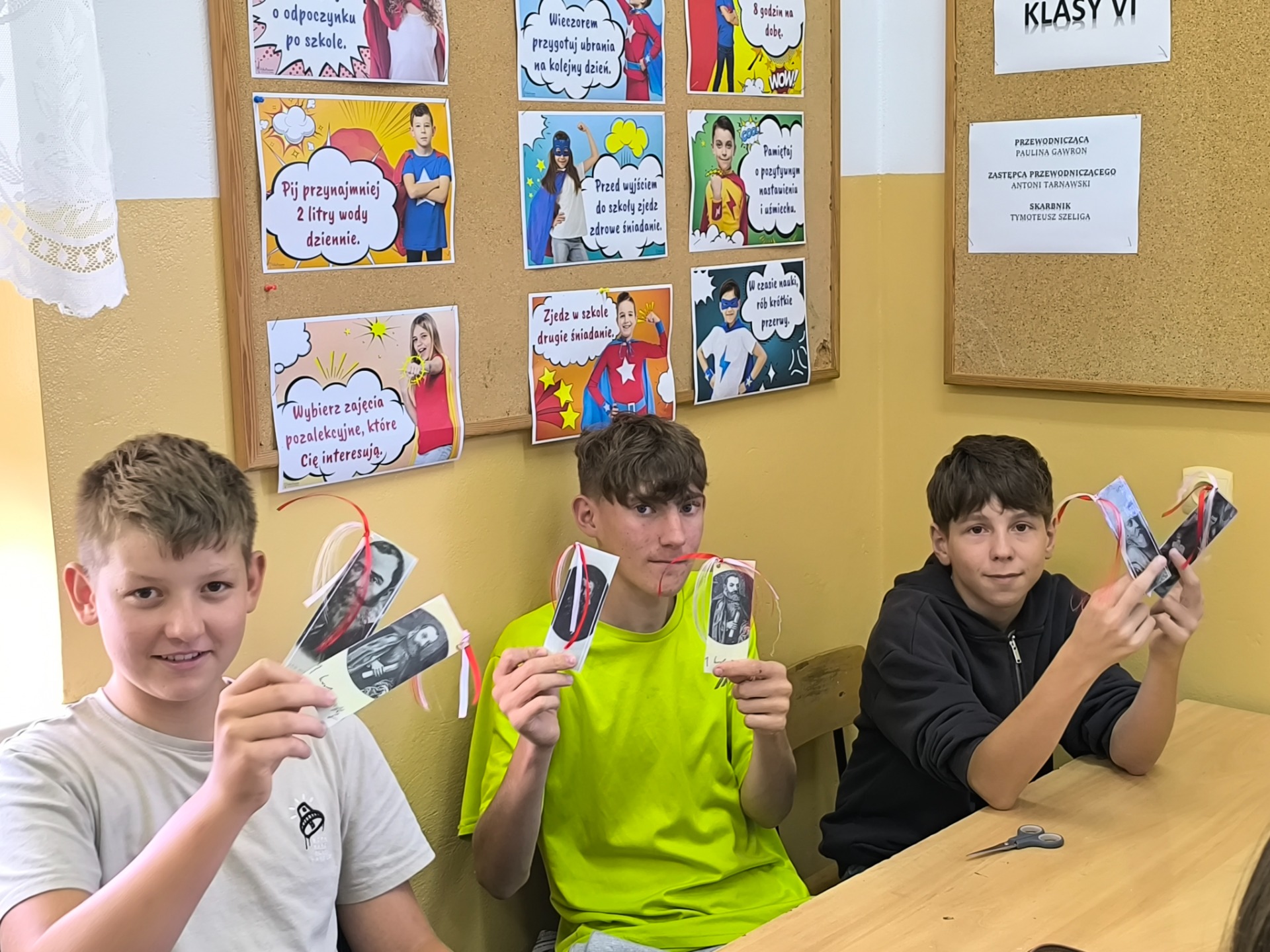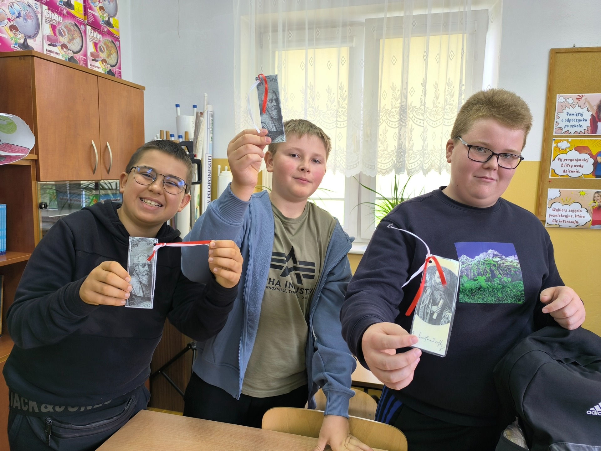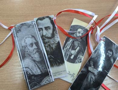 Na lekcjach plastyki i techniki uczniowie przygotowali pamiątkowe zakładki. W czasie zajęć wykorzystane zostały materiały graficzne zamieszczone na stronie www. lustrobiblioteki.pl.