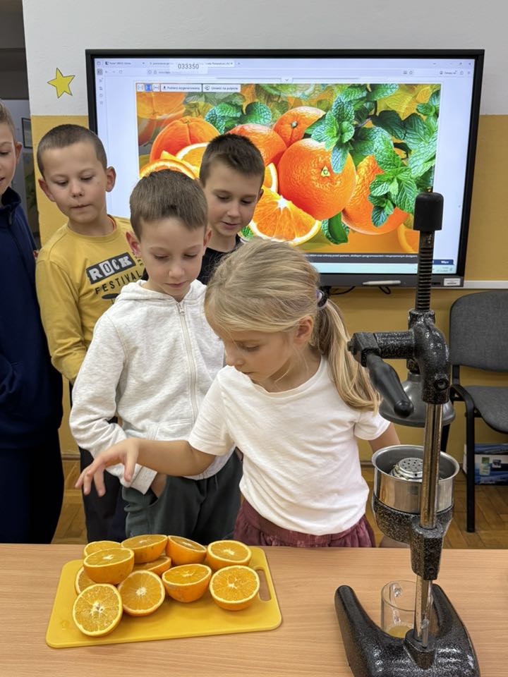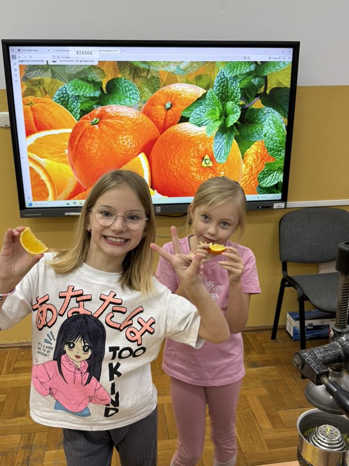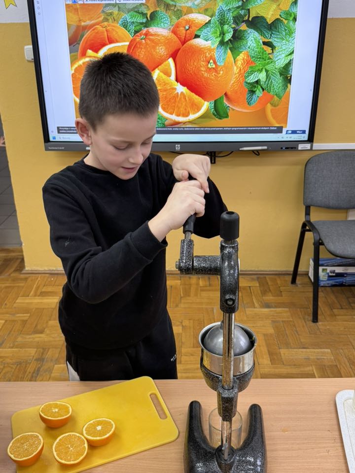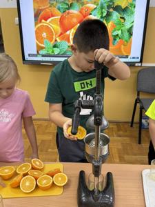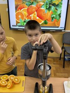 W zeszłym tygodniu w świetlicy szkolnej królowały zdrowe przekąski. Uczniowie przygotowali kolorowe, pełne witamin kanapeczki. Wszyscy mieli też okazję spróbować świeżo wyciskanego soku z pysznych pomarańczy.