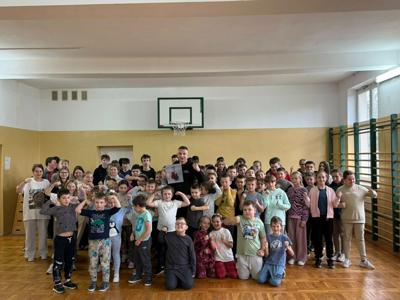 Na zakończenie projektu odbyła się inspirująca pogadanka z trenerem Kamilem Lamczykiem, który opowiedział dzieciom o zdrowym trybie życia, znaczeniu zbilansowanej diety oraz regularnej aktywności fizycznej.