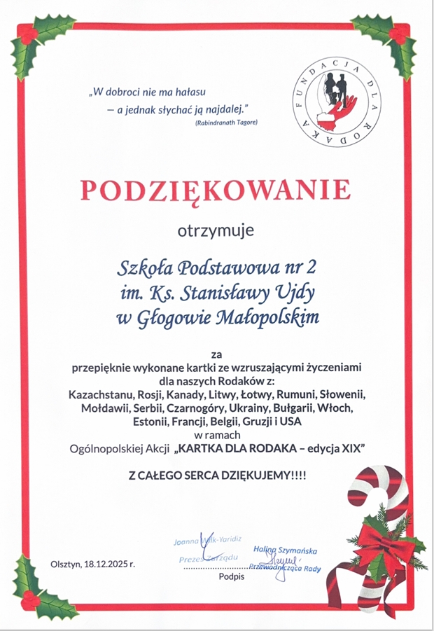 Zobacz również 02.01.2026 "Kartka dla Seniora" 12.12.2025 XXIII Wojewódzki Konkurs Piosenki Obcojęzycznej 12.12.2025 "Mikołajkowa zbiórka dla zwierząt" 09.12.2025 X Gminny Turniej Szachowy "Kartka dla Rodaka" Opublikowano: 08 stycznia 2026 20:01 Kategoria: Aktualności Wydrukuj Wyświetleń: 11
